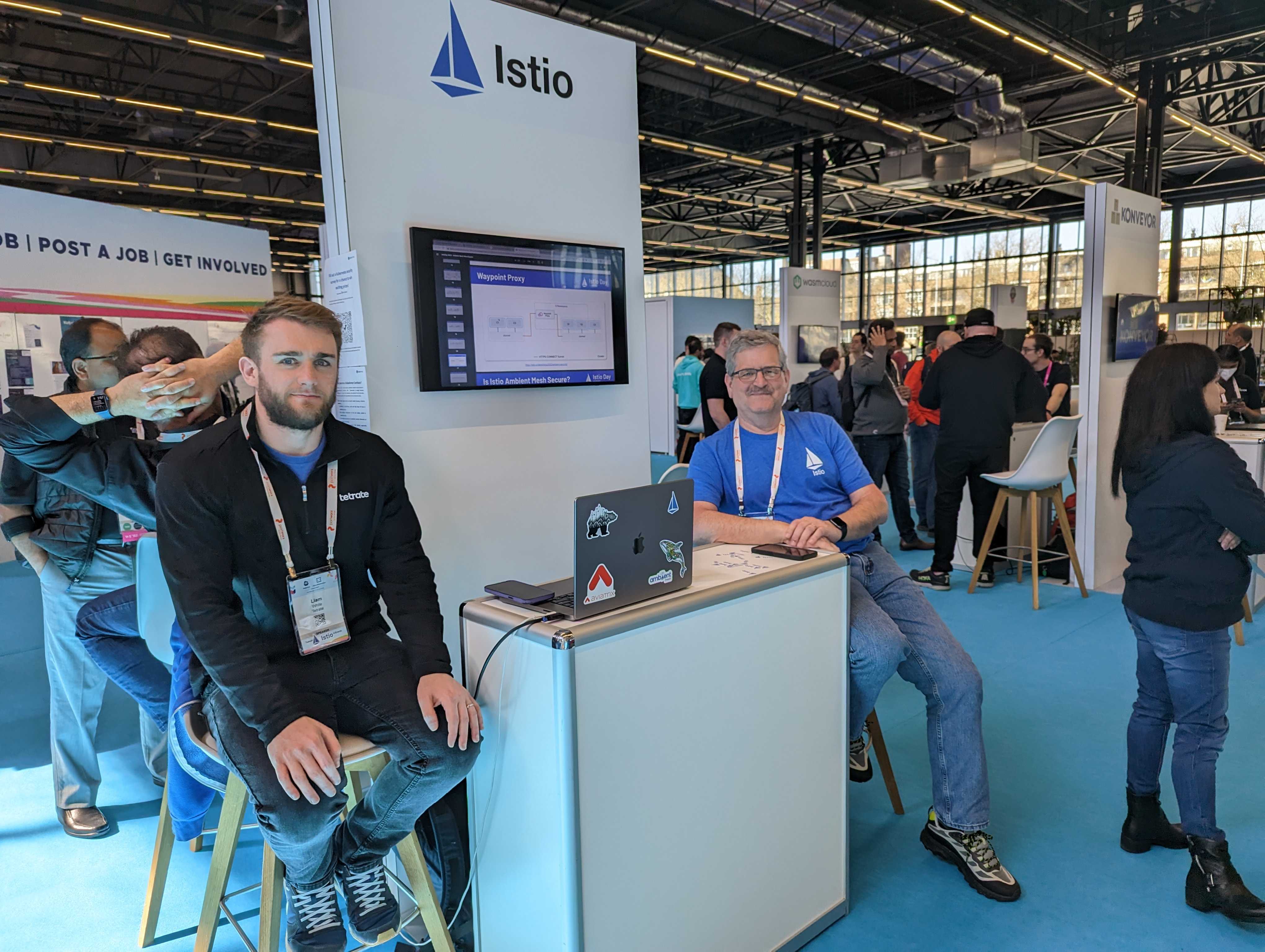 Muchos de nuestros miembros del TOC y mantenedores también ofrecieron apoyo en el kiosco, donde ocurrieron muchas discusiones interesantes alrededor de Istio Ambient Mesh también.